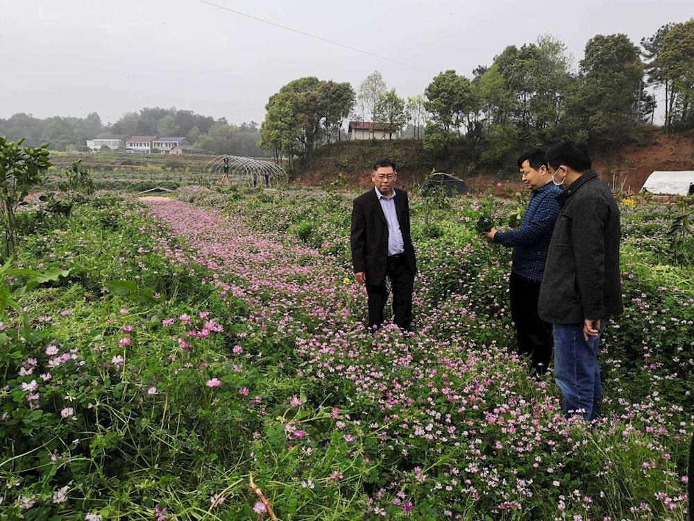 (市农业农村局副局长罗卫华查看紫云英长势)