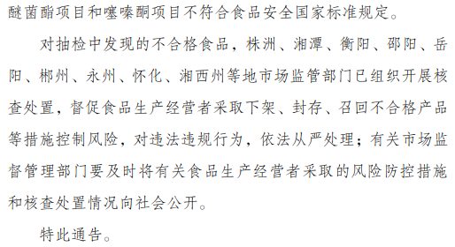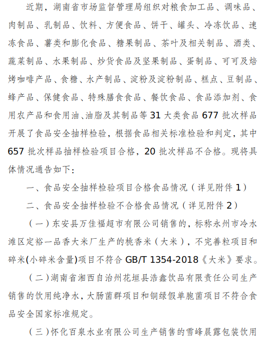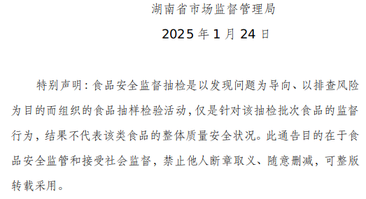 湖南省市场监督管理局关于677批次食品安全抽样检验情况的通告(2024年第26期)